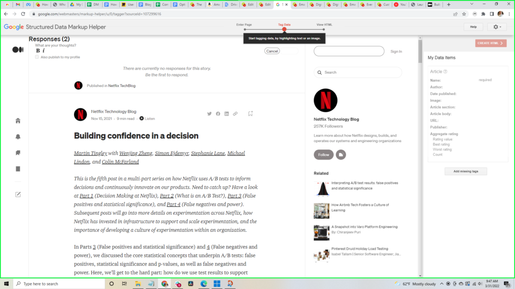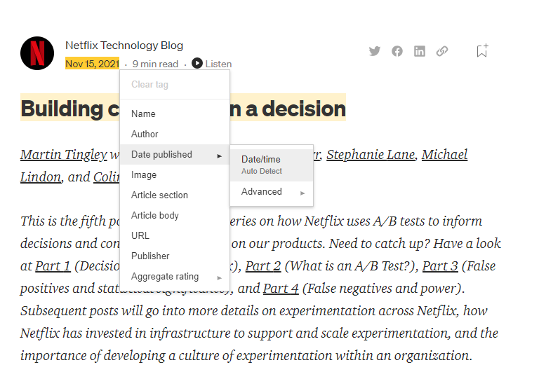 Next, just paste the URL of the page where you want to add this data. Let’s say we were working on this article from the Netflix blog: