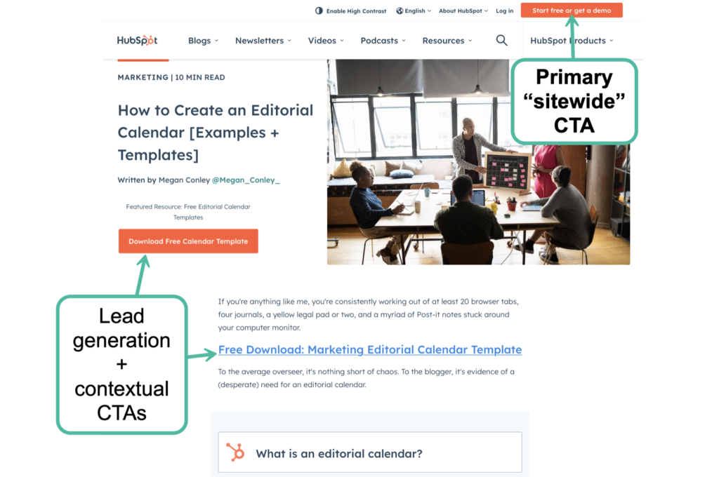Note how contextual CTAs in this example perfectly align with content on the page. That is exactly why you need to develop lead magnets for just about any content you put on your blog.