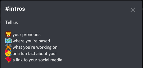 For some additional inspiration, check out what Orbit asks when you join their Discord Server.