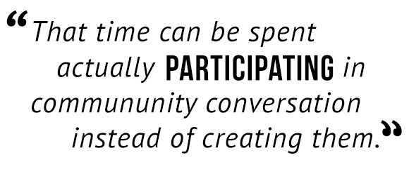 Community managers understand the power of consistent community-building content… having the ability to schedule these posts is a HUGE time-saver!