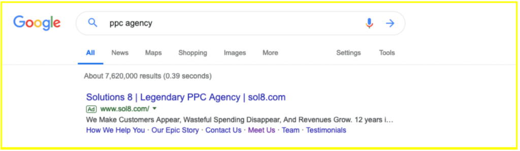 Again, you’ll recognize these ads as the first results that pop up on the top of a Google search results page: