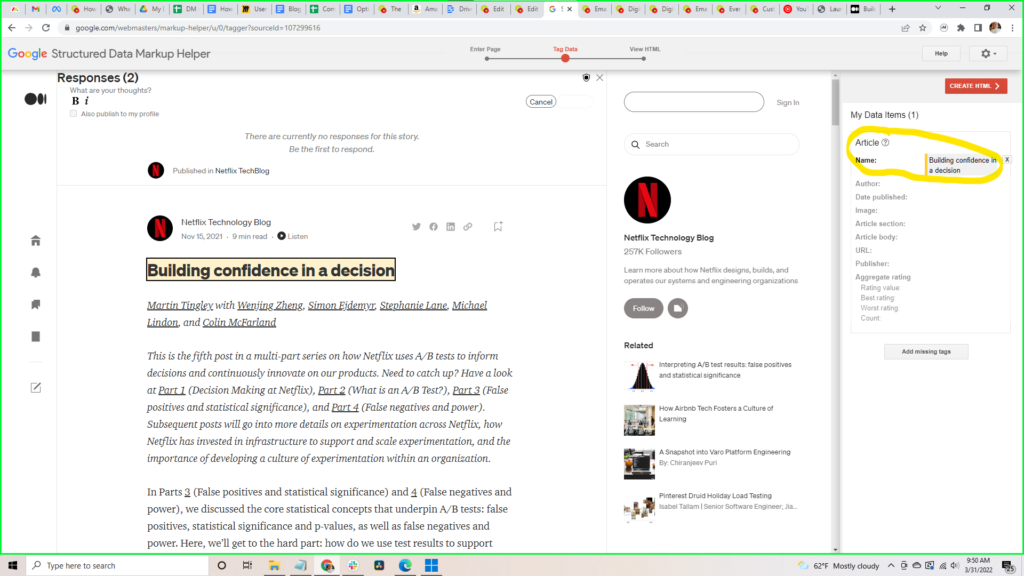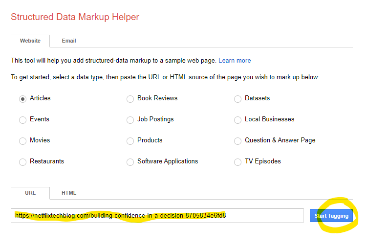 Next, just paste the URL of the page where you want to add this data. Let’s say we were working on this article from the Netflix blog: