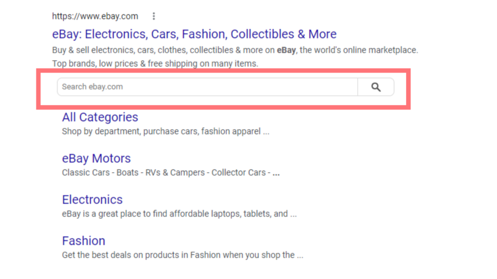 Schema markup can even be used to add extra functionality in the SERPs, such as this search bar for eBay: