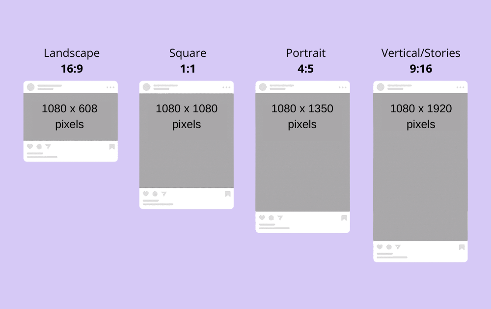 Again, this isn’t just a difference per platform. It depends on your ad placement. You can easily look up all the recommended aspects per placement (also shown while you’re creating your ad). But if you don’t want to bother with different dimensions for different placements, the most universal and best optimized ratio for your content is going to be either a 1:1 or 4:5 ratio with a