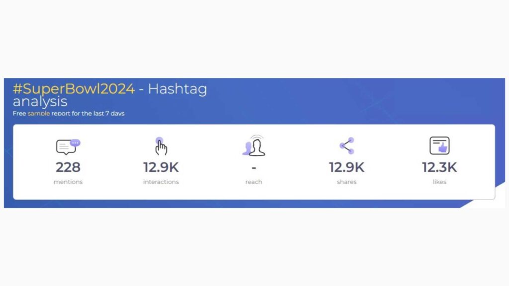 Here’s an example of a hashtag performance report for the #SuperBowl2024.