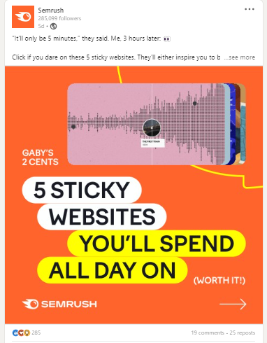 Use numbers: Numbered lists and guides with easy steps can help increase engagement. See how Semrush does it.