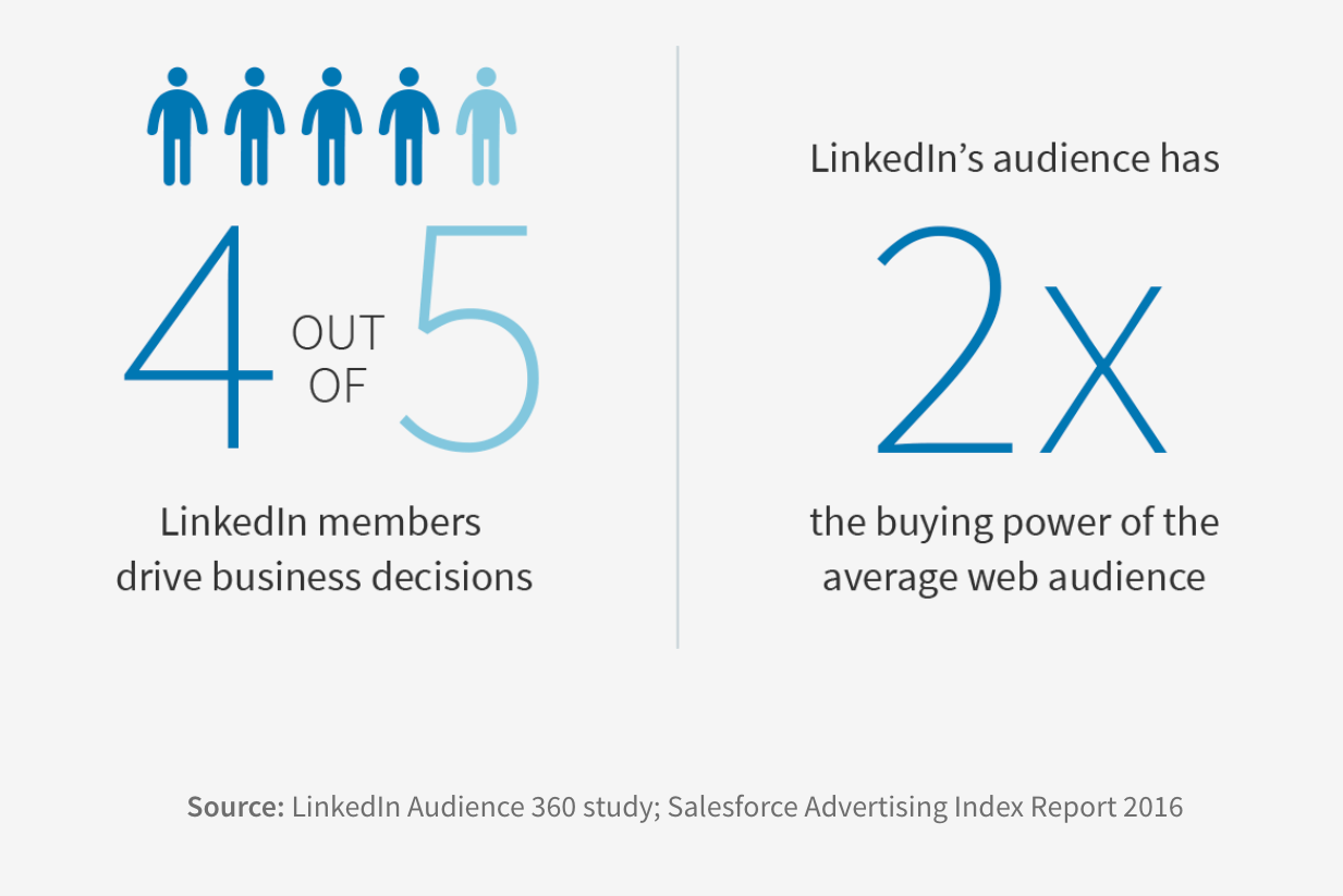 LinkedIn reported over 706 million users and furthermore, says that 80% of these users have influence over business decisions. Because of the professional environment and high concentration of business accounts, LinkedIn also claims that their users have double the buying power of a more general online audience. Surely, these are very valuable potential clients!