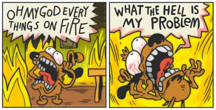 Super funny! However, did you know that this is just the first part of the comic? In the original, the dog’s face MELTS. Another artist did a revised version that includes the frame you see above followed by several frames like the one below: