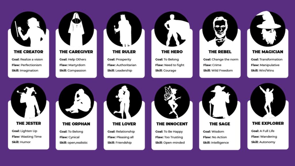 Archetypes are universally recognized themes or characters that resonate deeply with human psychology. They provide a framework for your brand’s personality, shaping how it connects with your audience on an emotional level.