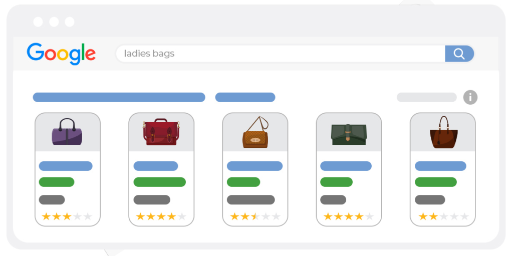 - Google uses your feed to create “placement shopping ads” that appear on relevant search results pages.