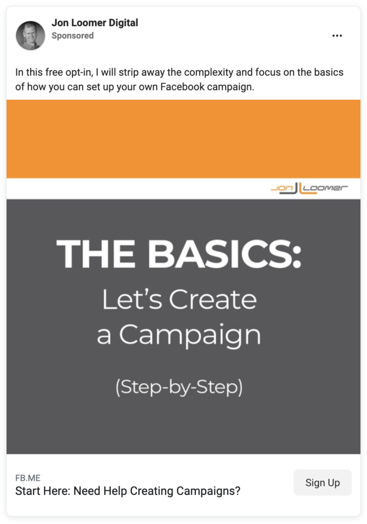 See how Marketer Jon Loomer has done something similar with a simple two-step Facebook ad funnel below: