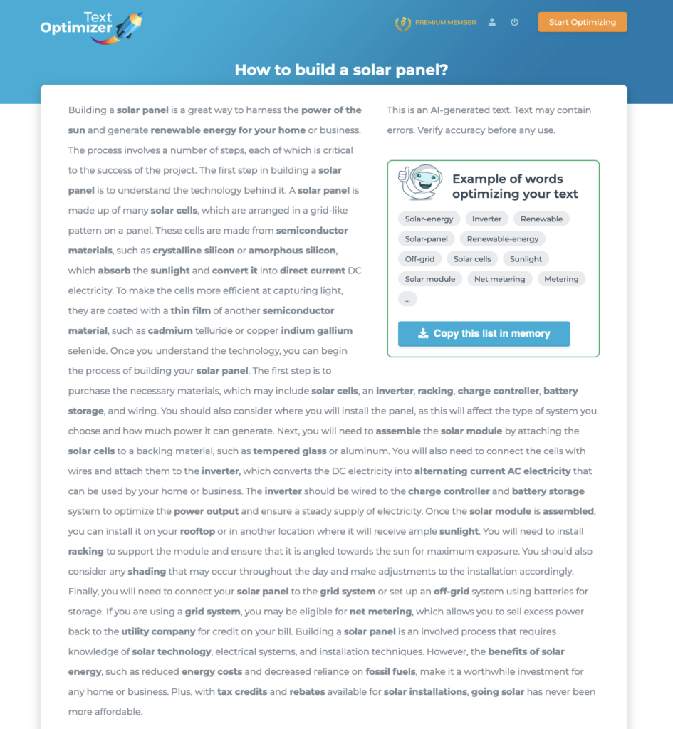 There are also lots of interesting integrations for ChatGPT that will be helpful for writers. For example, Text Optimizer generates semantically-optimized answer to any question you type:
